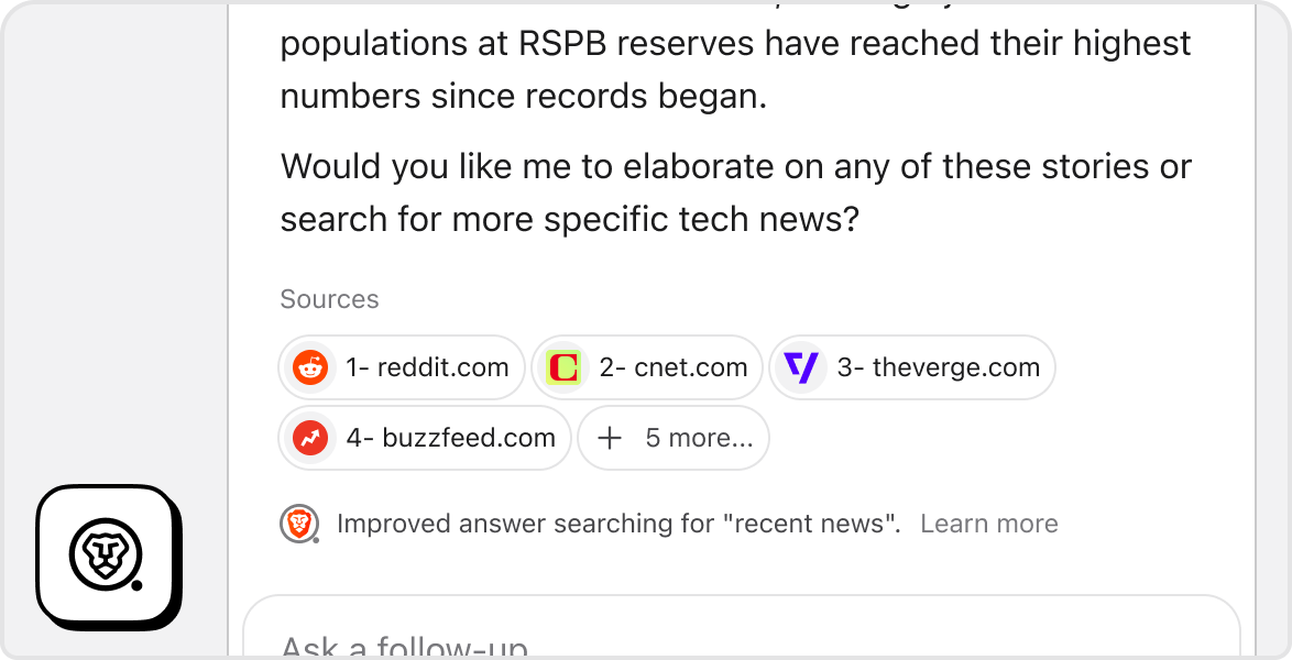 Leo uses Brave Search to enhance answers with richer details and up-to-date info.