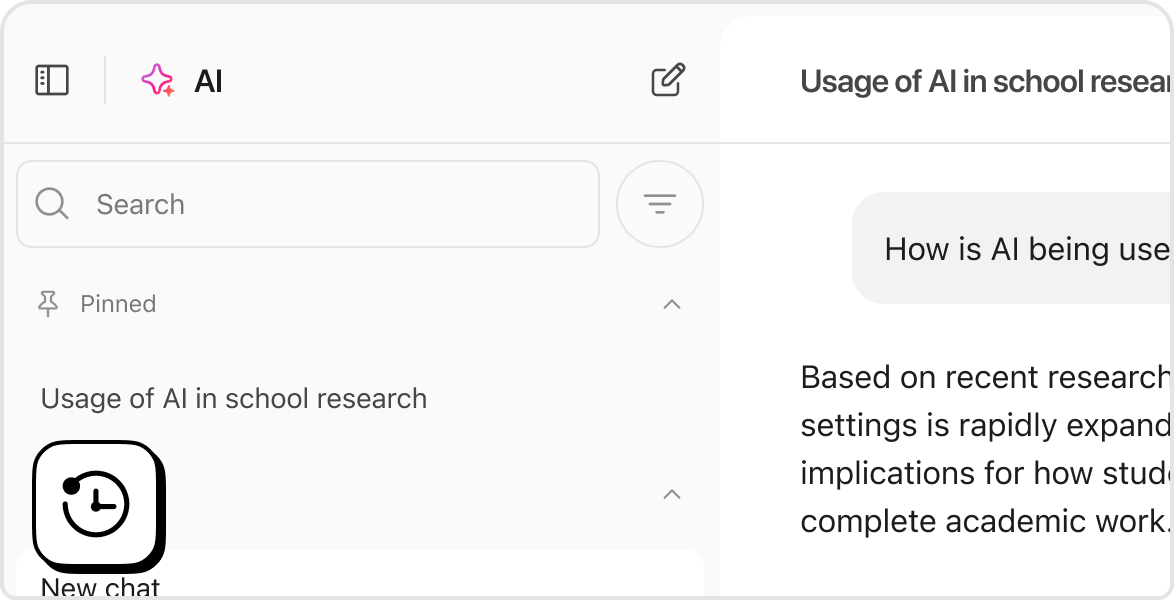 Save and revisit conversations locally on your device, or continue them later.