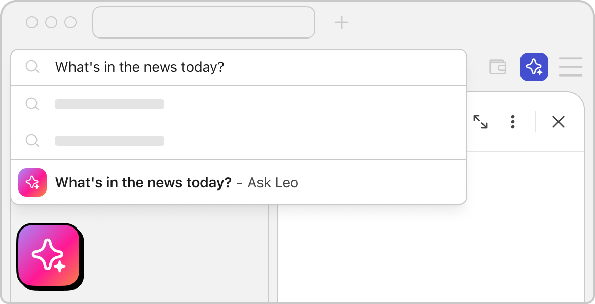 Just start typing in the address bar and choose “Ask Leo” to get started. Or click the Leo icon in the toolbar.