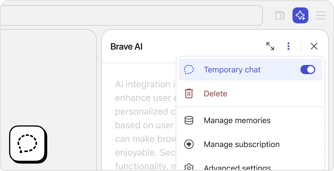 Run your own AI models, whether local or remote. Get more control over your AI interactions while maintaining Brave’s commitment to privacy.
