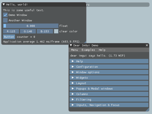 This sample demonstrates the integration of the engine with dear imgui UI library.