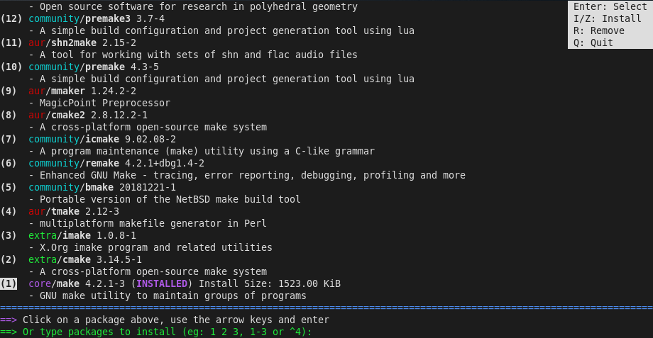 After selecting packages to install, you can revise your decision if you made a mistake.
